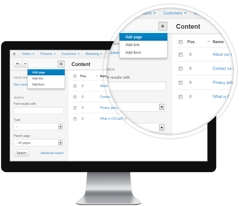 Jedes CS-Cart-System hat einen leistungsstarken Admin-Bereich. Dieser ist mit Dutzenden von Funktionen vollgestopft, damit du die volle Kontrolle über deinen Martkpaltz bzw. Onlineshop hast.